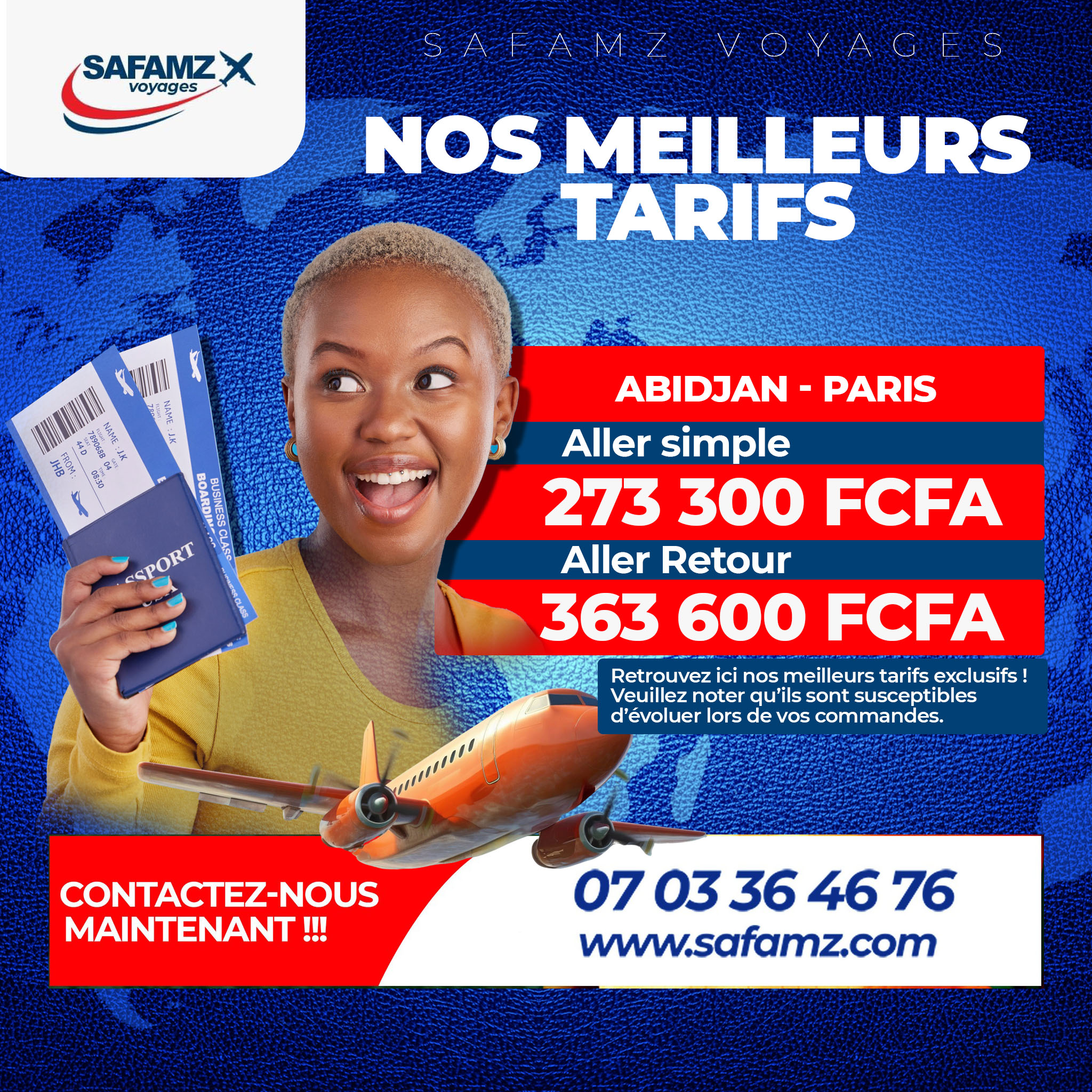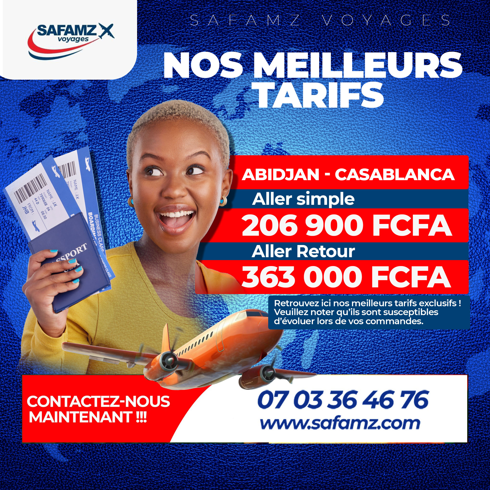 Chez Safamz Voyages, notre mission est claire : connecter la Côte d’Ivoire au reste du monde. Nous vous offrons bien plus qu’un simple voyage : une expérience fluide, sécurisée et inoubliable, adaptée à vos besoins.